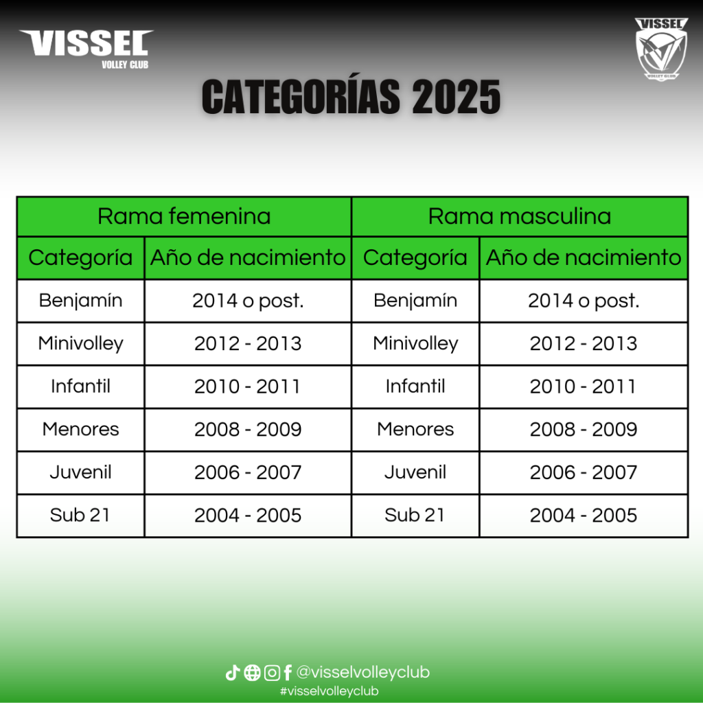 Nuestros equipos se diferencian por el año de nacimiento, de esta manera los contenidos de cada clase se orientan en función de su rango de edad.